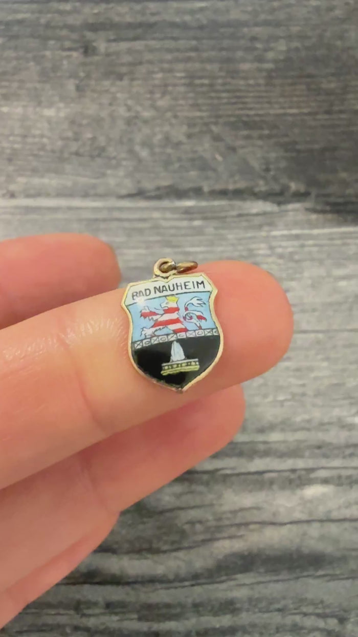 Vintage Enamel and 8K Gold Shield "BAD NAUHEIM" German City Charm