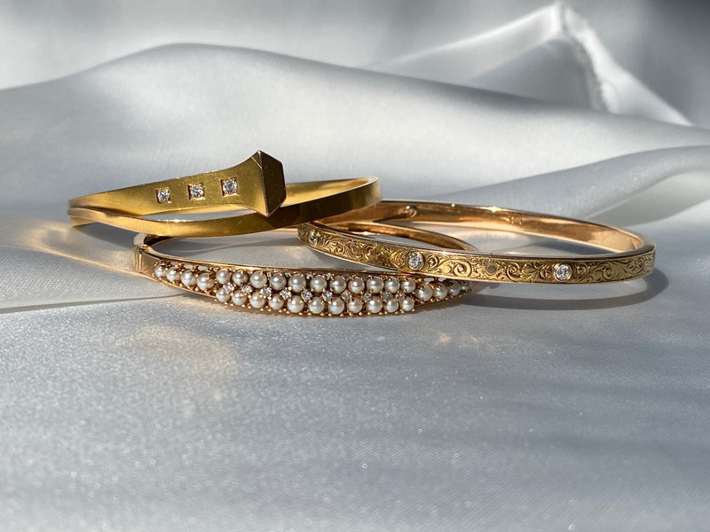 Midcentury Diamond and 14K Gold Mermaid Scale Buckle Ring