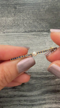 Antique Sapphire and Pearl Bar Pin in 18K Gold