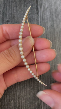 Vintage Pearl and 14K Gold Crescent Pin