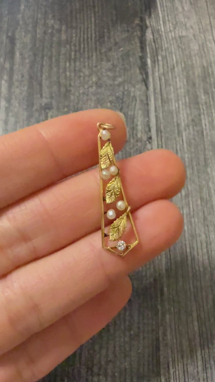 Art Nouveau Pearl and Diamond Leaf Pendant