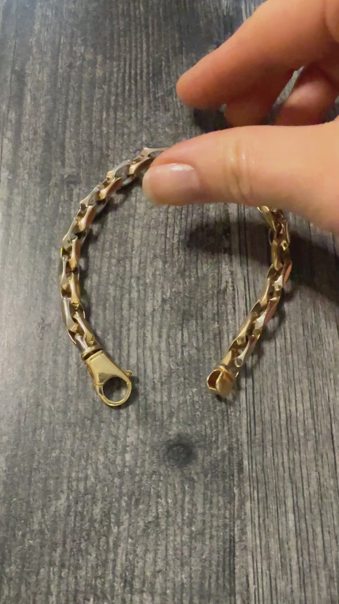 Vintage 14K Bicolor Gold Squared Biker Link Bracelet, 8.25" Long