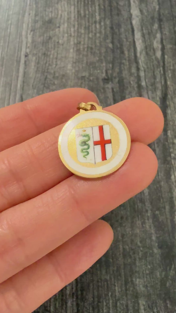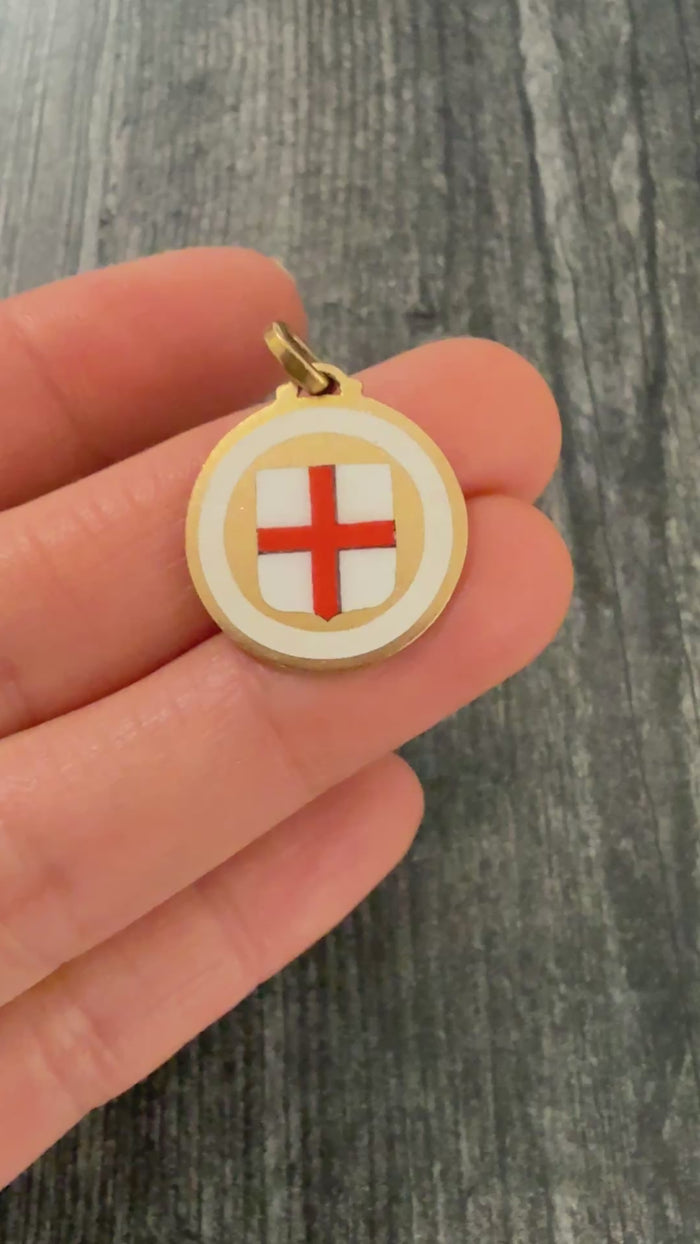Enameled 18K Gold Coat of Arms of Genoa, Saint George's Cross