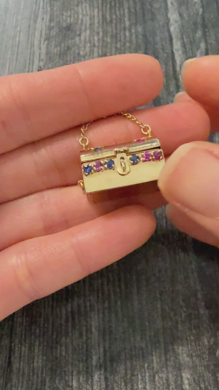 Vintage 14K Gold Gem Set Treasure Chest Charm