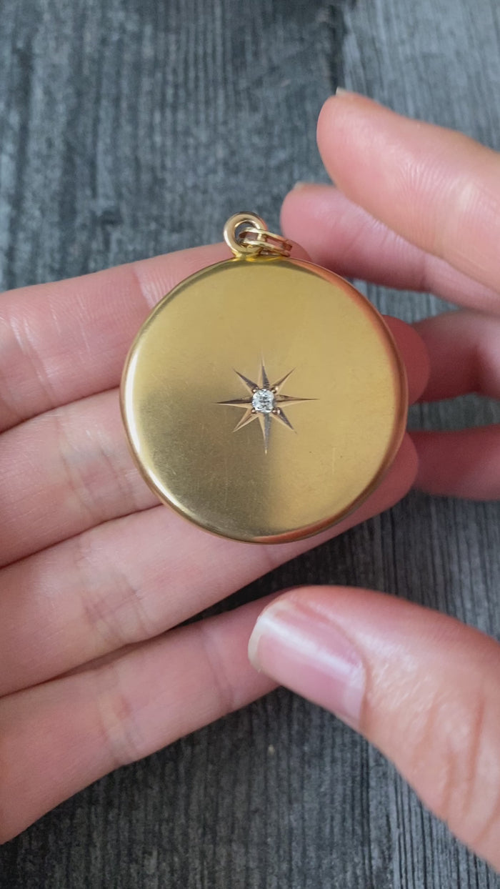 Large Victorian Star Set Diamond and 10K Gold Locket