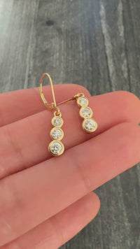 Bezel Set Triple Diamond Dangle Earrings in 14K Gold