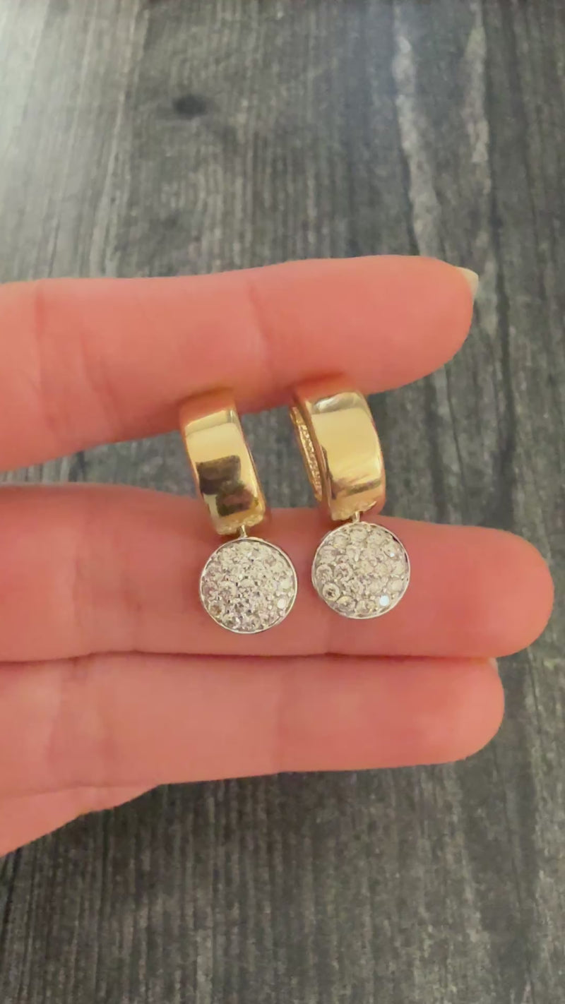 Circular Pave Diamond Dangle and 14K Gold Huggie Earrings
