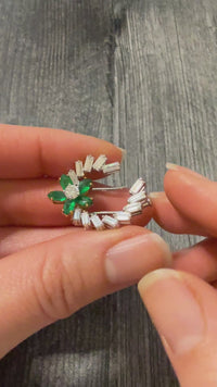 A striking vintage crescent pin with beautiful contrasting icy diamonds and richly saturated emeralds. The clean, white diamond baguettes sweep outward in a graceful arc, catching the light from every angle. At the center, a delicate floral motif blooms with vibrant emeralds. Set in 18K gold, this pin is exceptionally well-made in a wearable design. Easily converted into a pendant if requested!