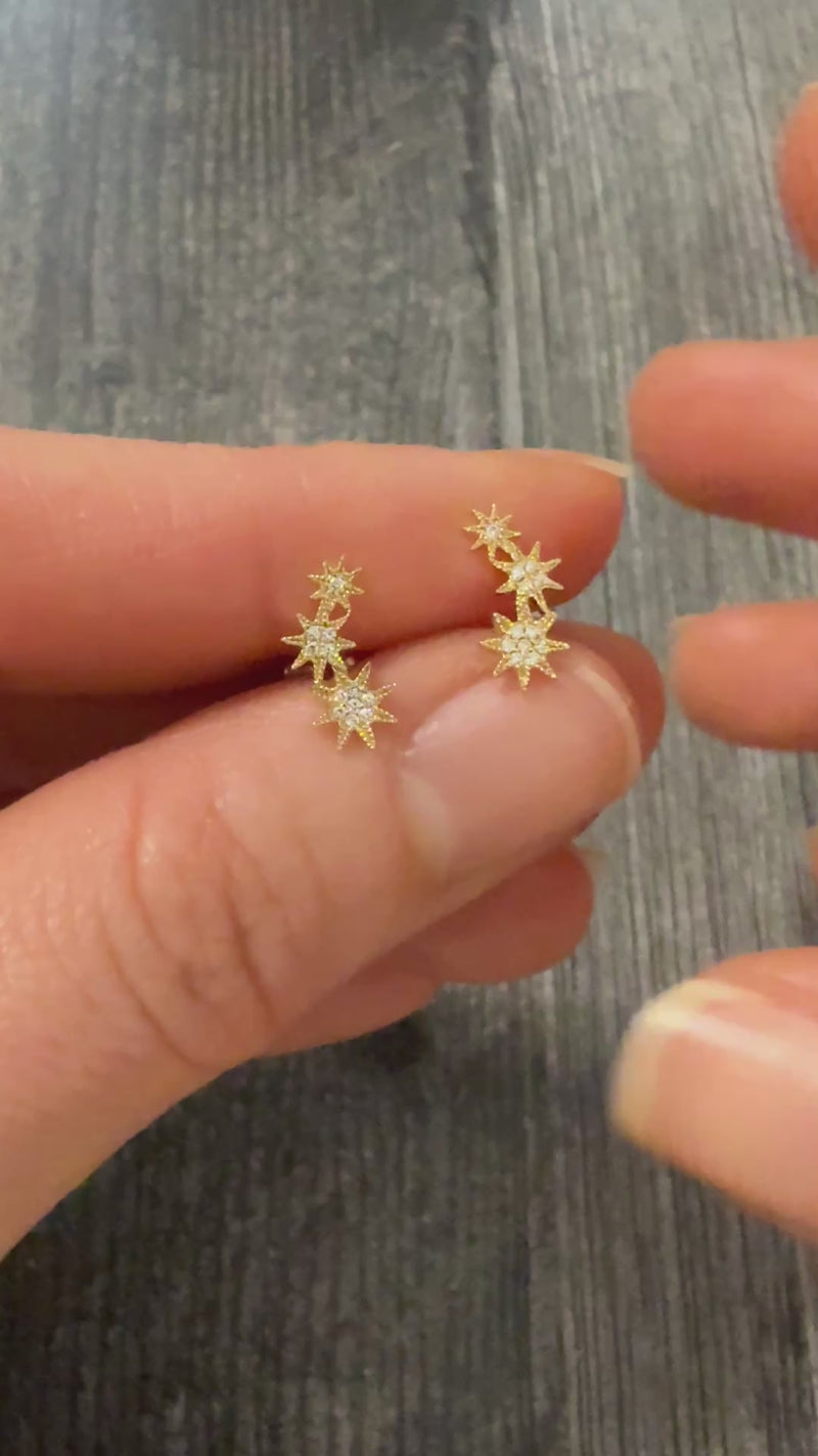 Diamond Star Climber Stud Earrings in 14K Gold