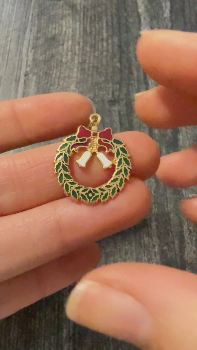 Vintage Enamel and 14K Gold Christmas Wreath Charm