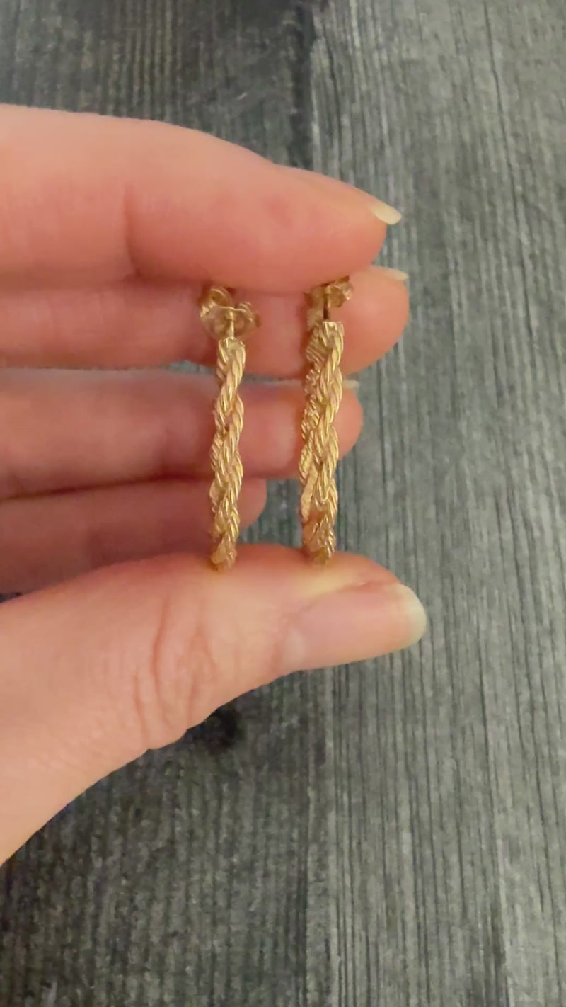 Vintage 14K Gold Rope Chain Style Oval Hoop Earrings