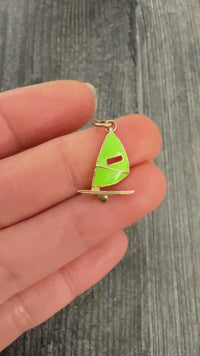 Lime Green Enamel Windsurfer Charm in 14K Gold