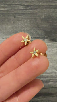 Vintage Diamond and 14K Gold Star Flower Unpierced Screwback Earrings