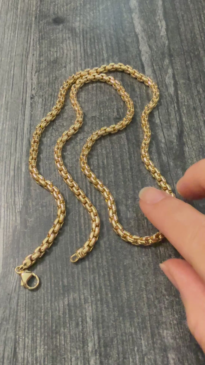 Barrel Link 14K Gold Chain with Dog Clip, 19.75" Long