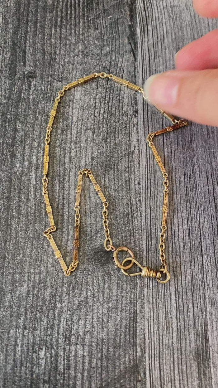 Vintage 14K Gold Rope & Bar Link Watch Chain With Dog Clip
