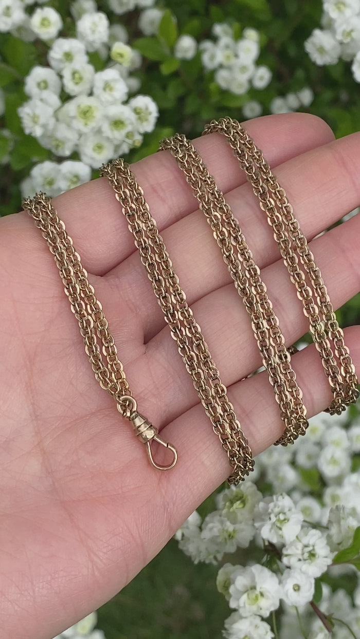 Victorian 14K Gold Open Link Longuard Chain, 54” Long