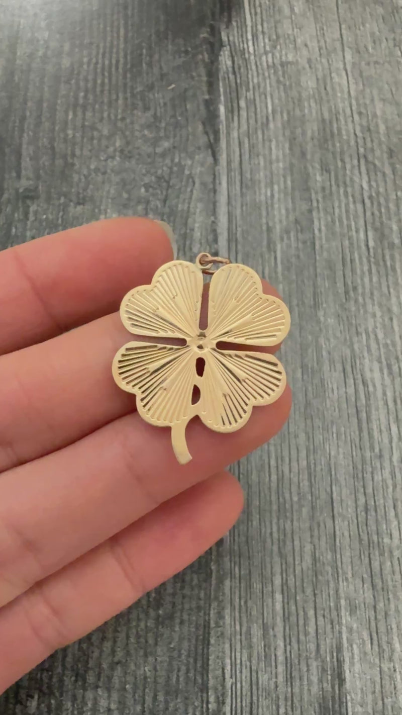 Vintage Engine Turned 14K Gold Clover Charm