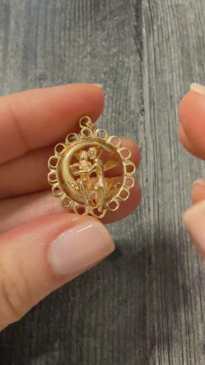 Romantic Kissing Couple Sitting on the Moon in a 14K Gold Charm