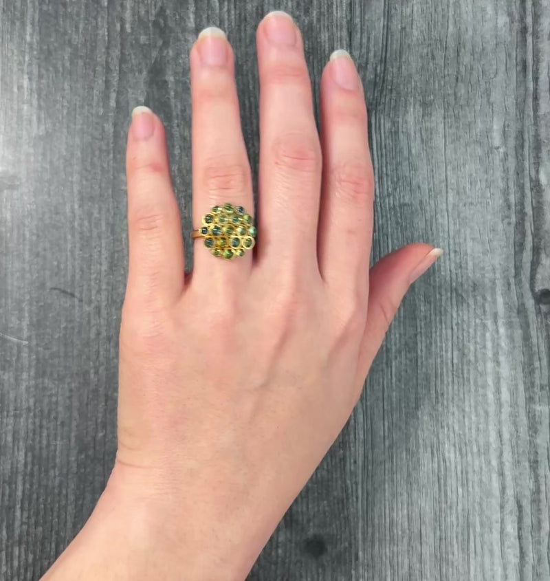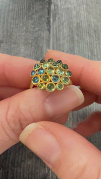 Cabochon Peridot and Blue Topaz Hydrangea Cluster Ring in 18K Gold