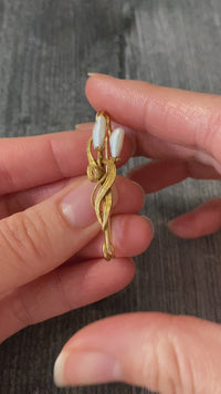 Art Nouveau Pearl and 14K Gold Lily Safety Pin