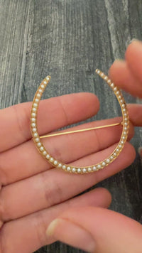 Large Antique Pearl and 14K Gold Horseshoe Pin
