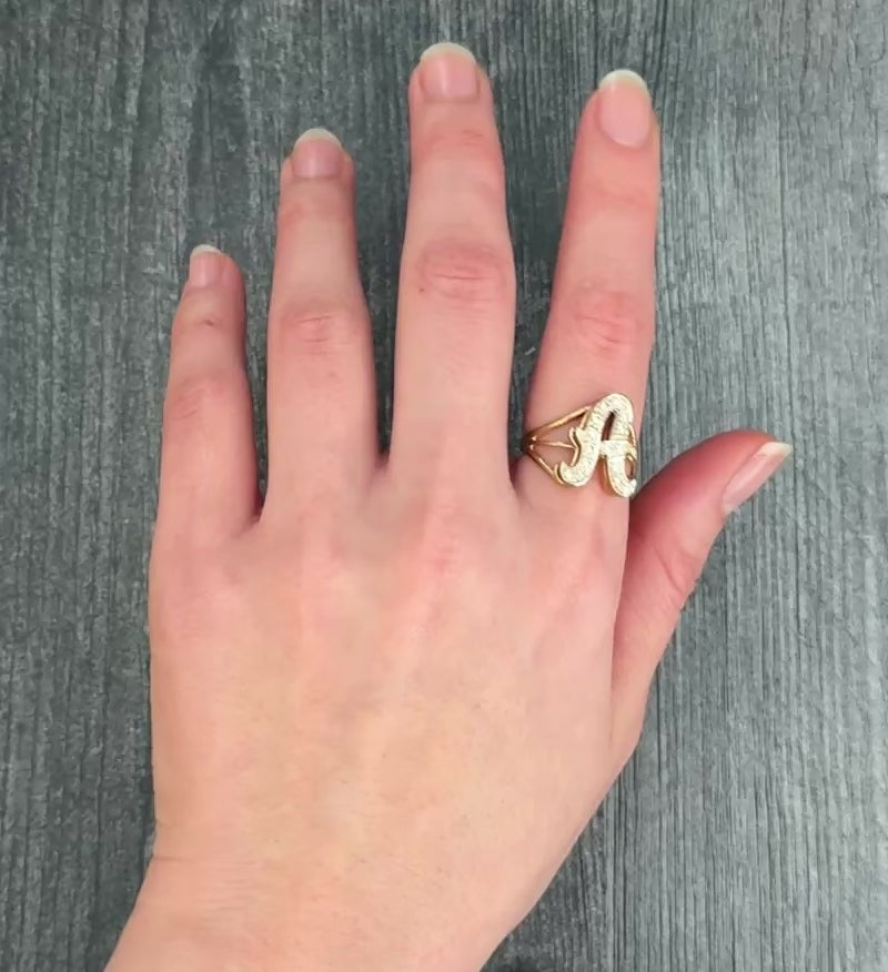 Diamond Initial A Ring in 14K Gold