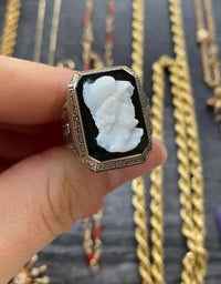 Art Deco 14K Gold Onyx Cameo Egyptian Revival Ring, Unisex