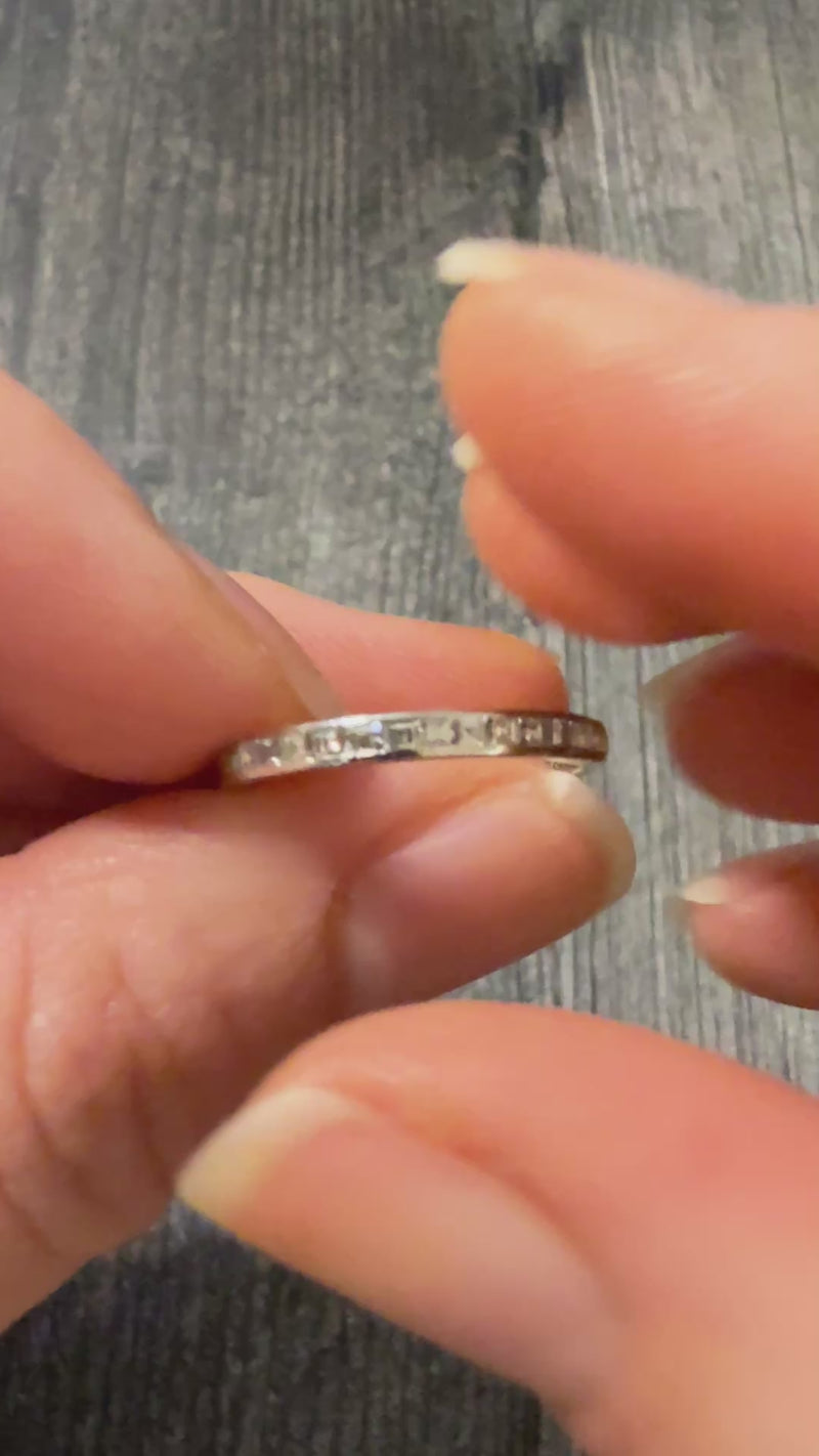 Carre Cut Diamond and Platinum Band, Size 6.25