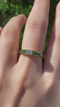 Carre Cut Diamond and Emerald 18K Gold Band, Stacking Ring