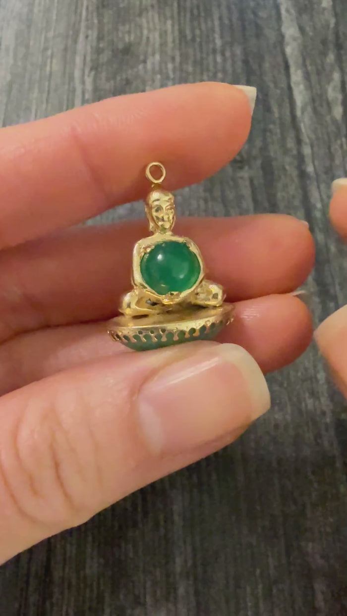 Vintage Jade and Chrysoprase Double Sided Buddha Charm, 14K Gold