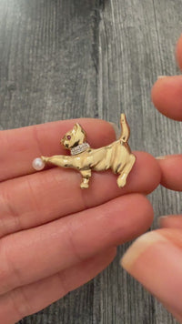 Playful Cat Pin in 14K Gold with Pearl Ball