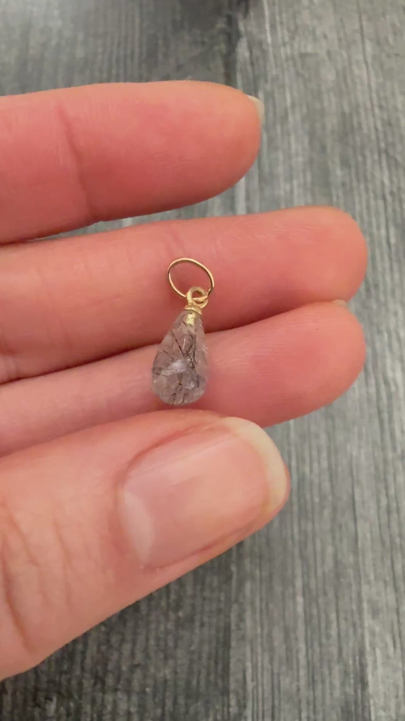 Teardrop Black Rutilated Quartz Charm