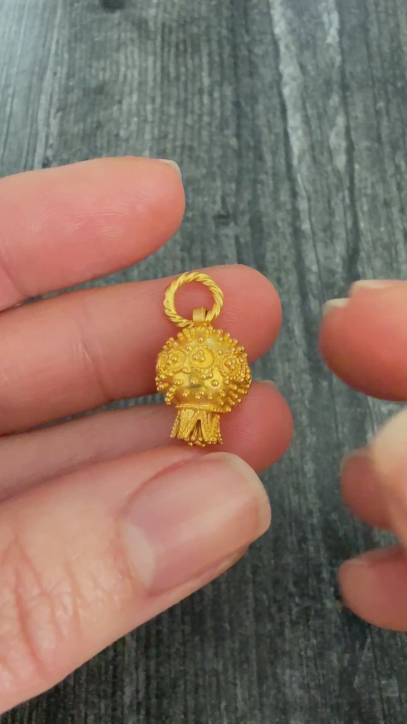 Small Etruscan Revival Style Pomegranate Charm in 18K Gold